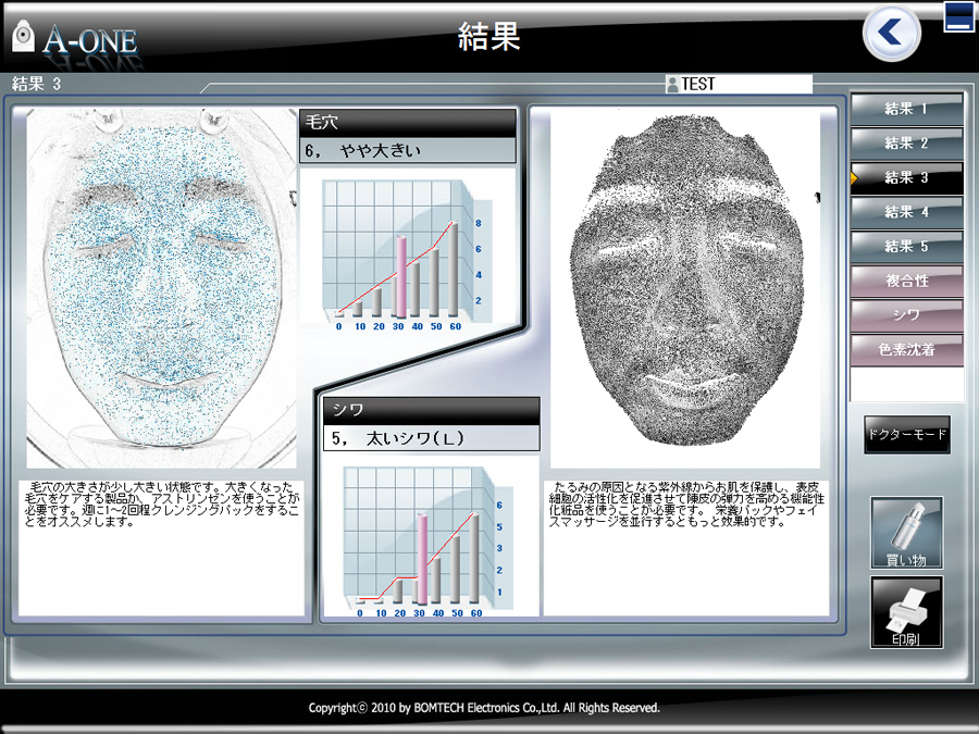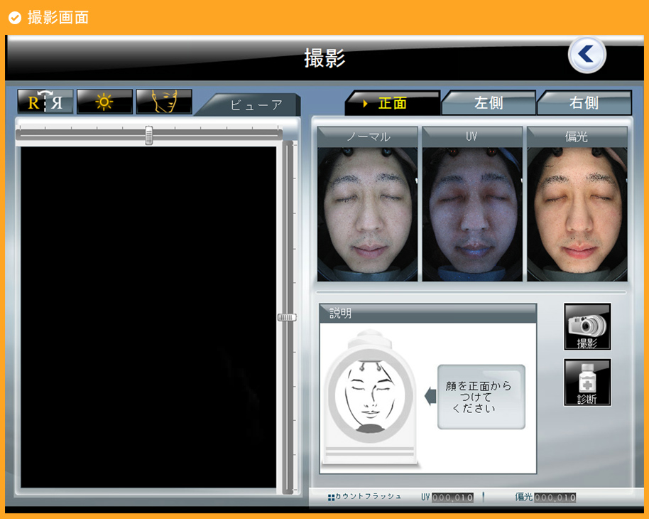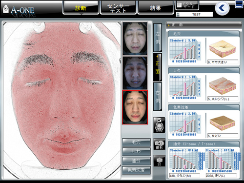 ▶ 測定項目 : 肌の毛穴、油分、しわ、色素沈着、