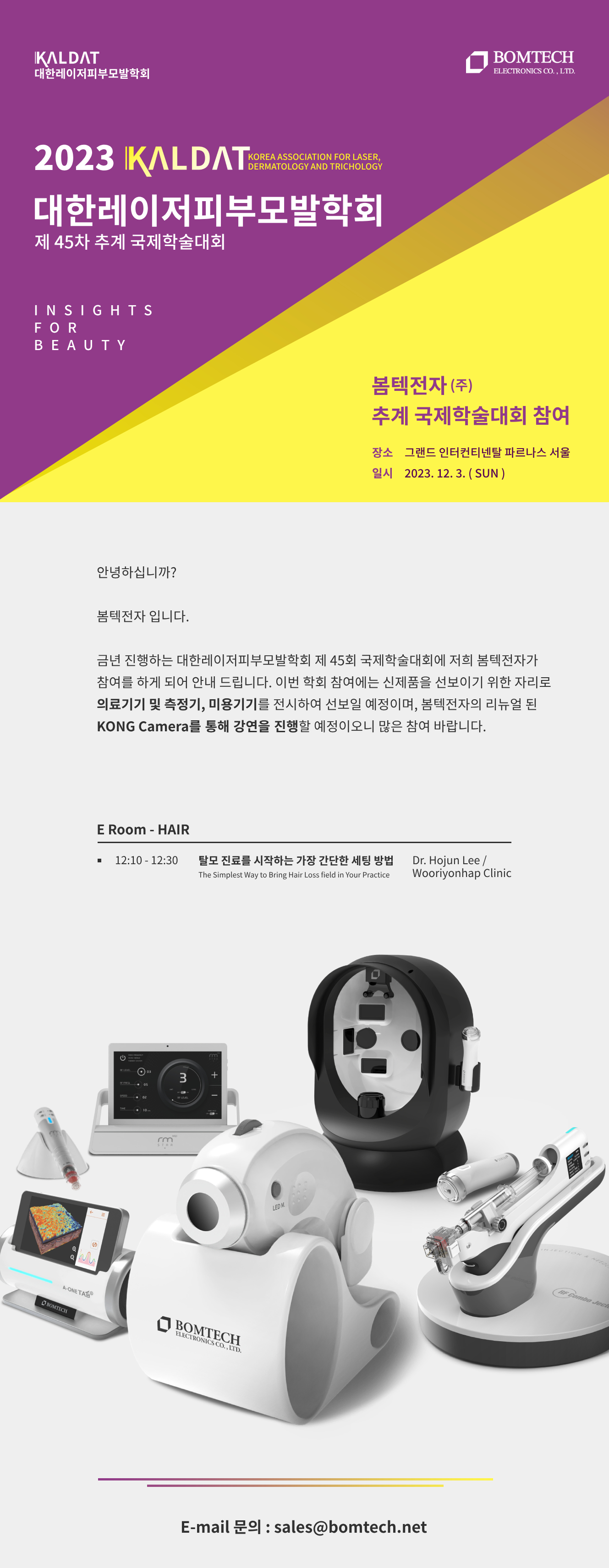 봄텍전자가 2023 대한레이저피부모발학회 학술대회에 참여를 합니다.