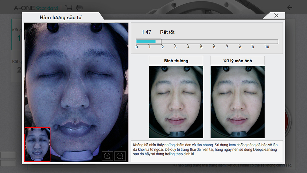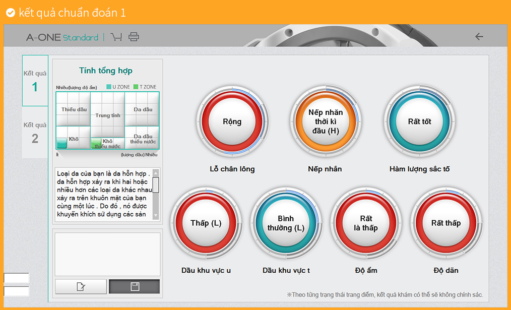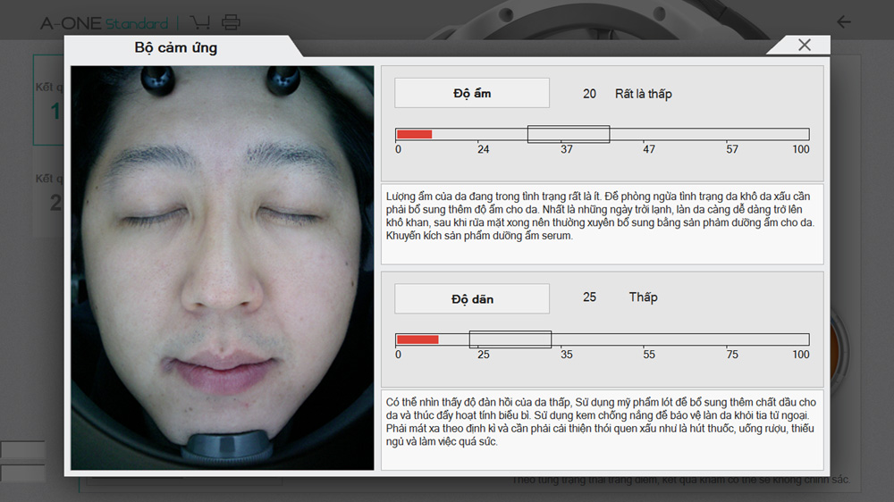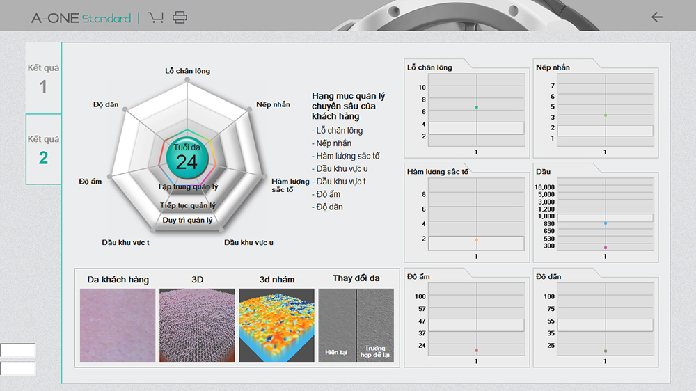 - Chuẩn đoán hạng mục 6 loại của da bằng cảm ứng EM và máy camera có độ phân giải cao.