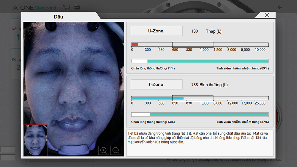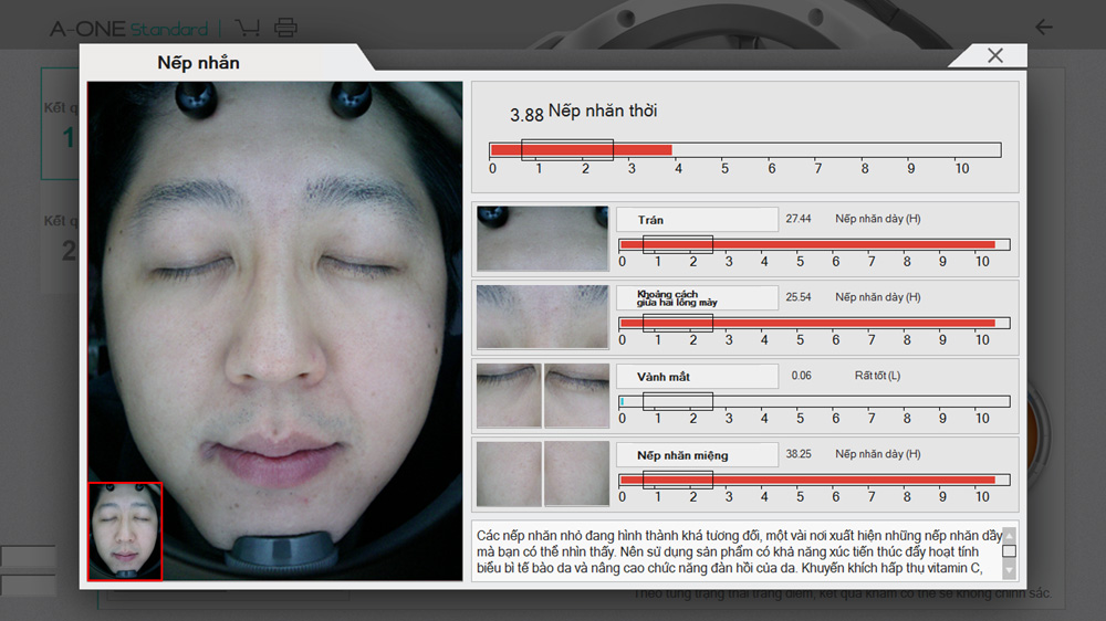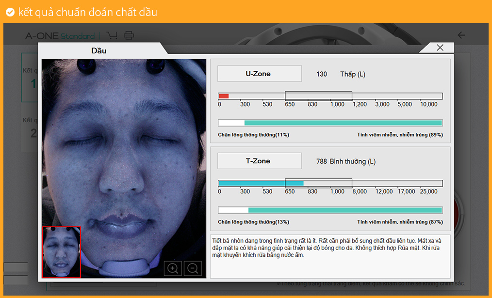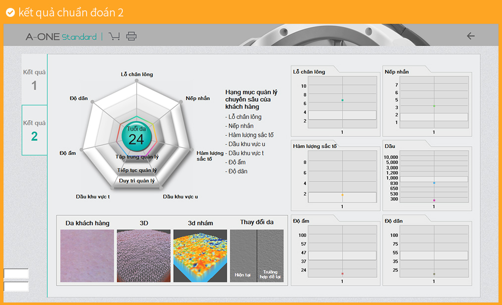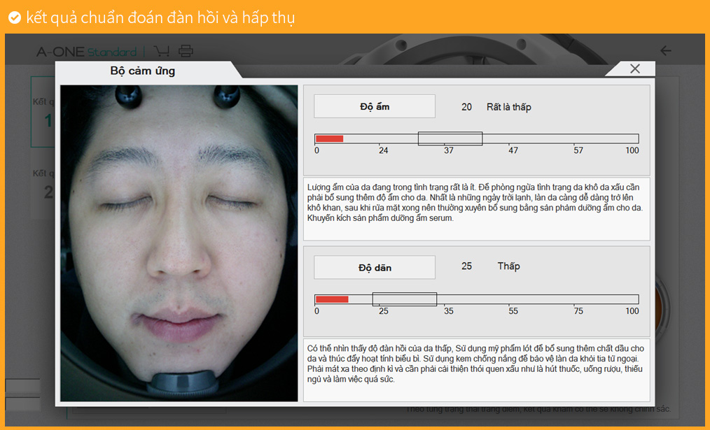 - Lỗ chân lông, dầu (khu vựcU, khu vựcT), nếp nhăn nếp nám ,độ ẩm (khu vựcU, khu vựcT) phân tích các tầng sâu đàn hồi