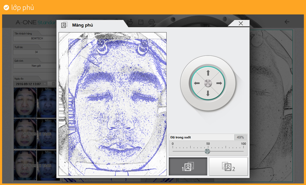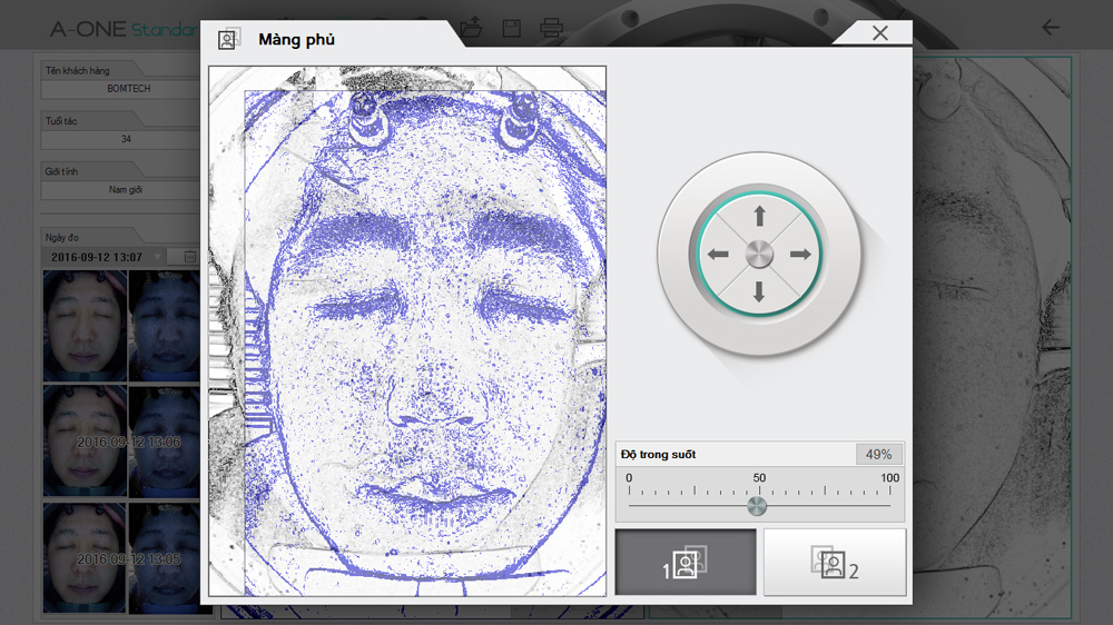 ▶ Hạng mục chuẩn đoán: Lỗ chân lông ,dầu, nám , nếp nhăn, độ ẩm và độ đàn hồi. - Tự động lựa chọn Mắt, Mũi, Miệng. Lông mày